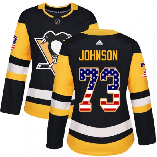 Women's Adidas Pittsburgh Penguins #73 Jack Johnson Authentic Black USA Flag Fashion NHL Jersey