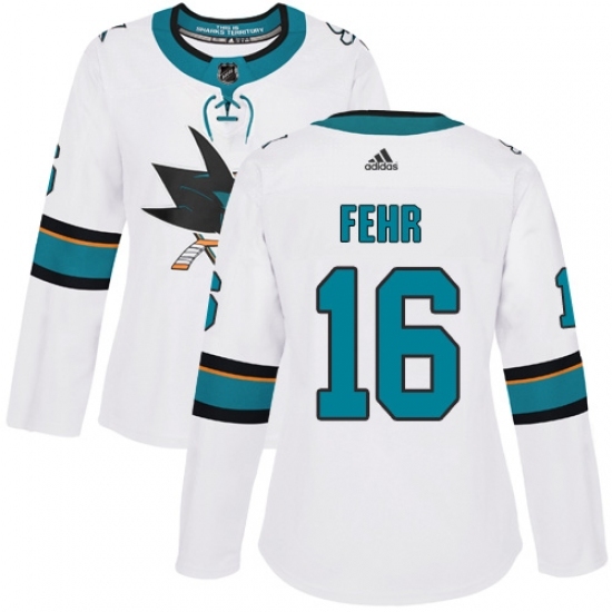 Women's Adidas San Jose Sharks #16 Eric Fehr Authentic White Away NHL Jersey