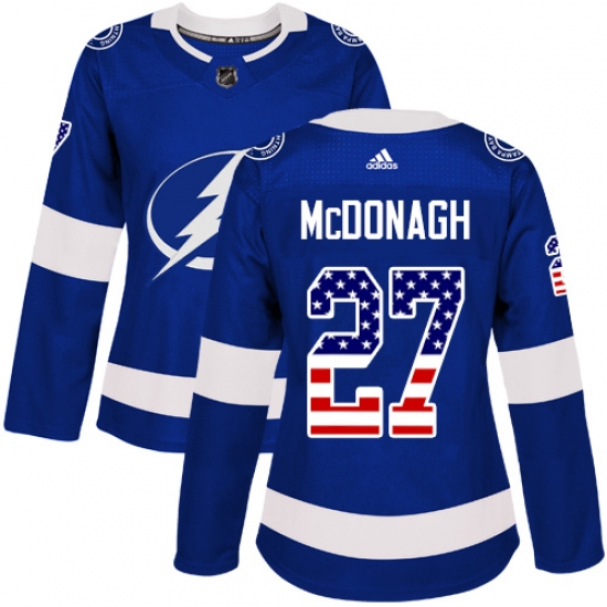 >Women's Adidas Tampa Bay Lightning #27 Ryan McDonagh Authentic Blue USA Flag Fashion NHL Jersey