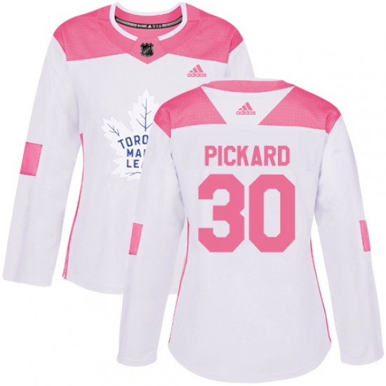 >Women's Adidas Toronto Maple Leafs #30 Calvin Pickard Authentic White Pink Fashion NHL Jersey
