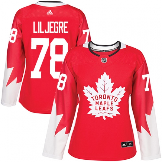 Home>NHL>Toronto Maple Leafs>Timothy Liljegren>Women's Adidas Toronto Maple Leafs #78 Timothy Liljegren Authentic Red Alternate NHL Jersey