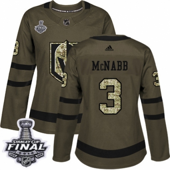 >Women's Adidas Vegas Golden Knights #3 Brayden McNabb Authentic Green Salute to Service 2018 Stanley Cup Final NHL Jersey