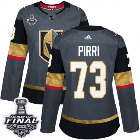 >Women's Adidas Vegas Golden Knights #73 Brandon Pirri Authentic Gray Home 2018 Stanley Cup Final NHL Jersey