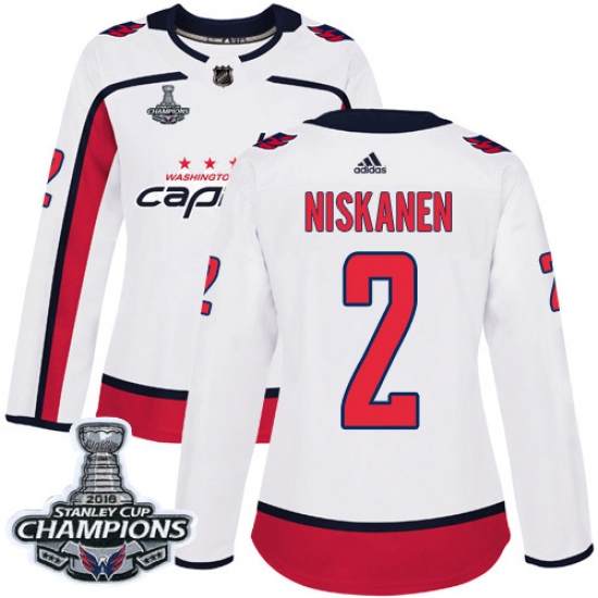 >Women's Adidas Washington Capitals #2 Matt Niskanen Authentic White Away 2018 Stanley Cup Final Champions NHL Jersey