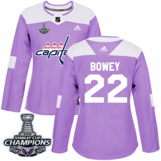 >Women's Adidas Washington Capitals #22 Madison Bowey Authentic Purple Fights Cancer Practice 2018 Stanley Cup Final Champions NHL Jersey
