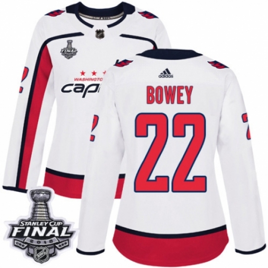 Women's Adidas Washington Capitals #22 Madison Bowey Authentic White Away 2018 Stanley Cup Final NHL Jersey