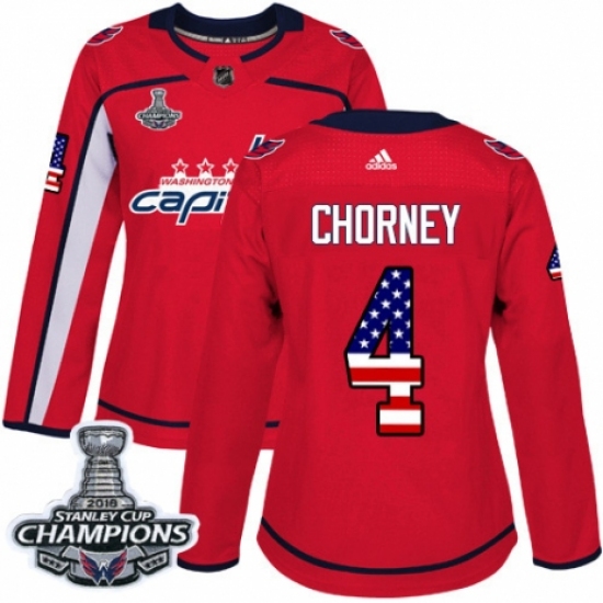 Women's Adidas Washington Capitals #4 Taylor Chorney Authentic Red USA Flag Fashion 2018 Stanley Cup Final Champions NHL Jersey