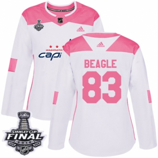 Women's Adidas Washington Capitals #83 Jay Beagle Authentic White/Pink Fashion 2018 Stanley Cup Final NHL Jersey