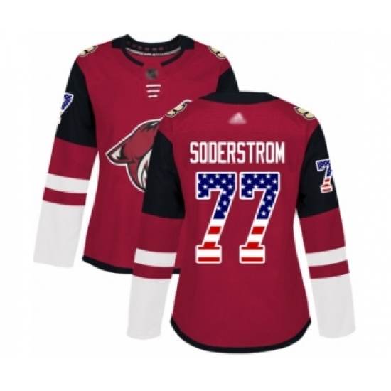 Women's Arizona Coyotes #77 Victor Soderstrom Authentic Red USA Flag Fashion Hockey Jersey
