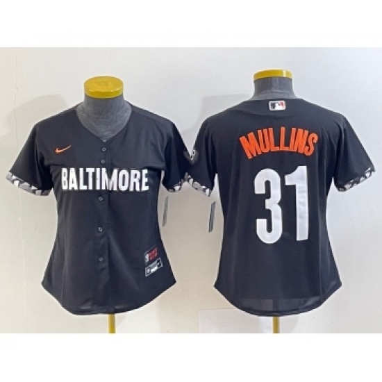 >Women's Baltimore Orioles #31 Cedric Mullins Black 2023 City Connect Cool Base Stitched Jersey