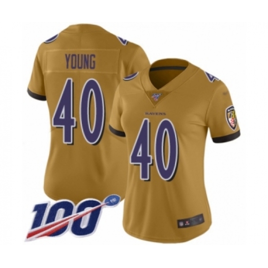 Women's Baltimore Ravens #40 Kenny Young Limited Gold Inverted Legend 100th Season Football Jersey