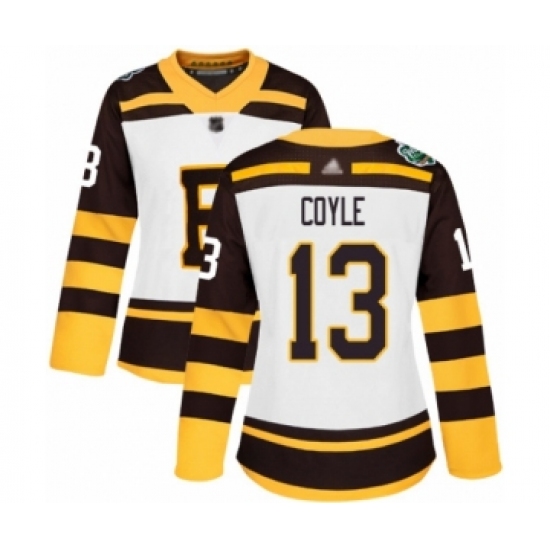 Women's Boston Bruins #13 Charlie Coyle Authentic White 2019 Winter Classic Hockey Jersey