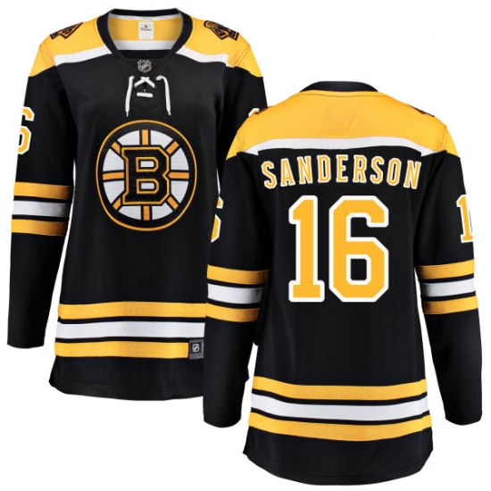 Women's Boston Bruins #16 Derek Sanderson Authentic Black Home Fanatics Branded Breakaway NHL Jersey