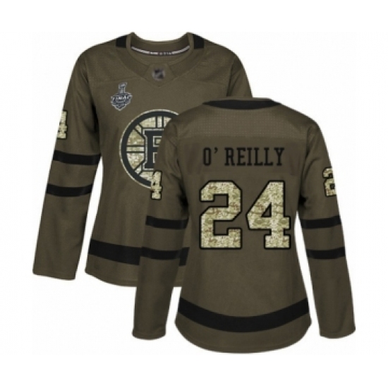 Women's Boston Bruins #24 Terry O'Reilly Authentic Green Salute to Service 2019 Stanley Cup Final Bound Hockey Jersey