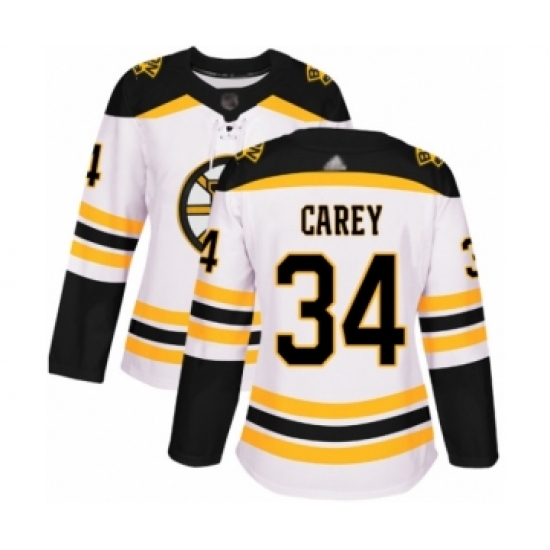 Women's Boston Bruins #34 Paul Carey Authentic White Away Hockey Jersey