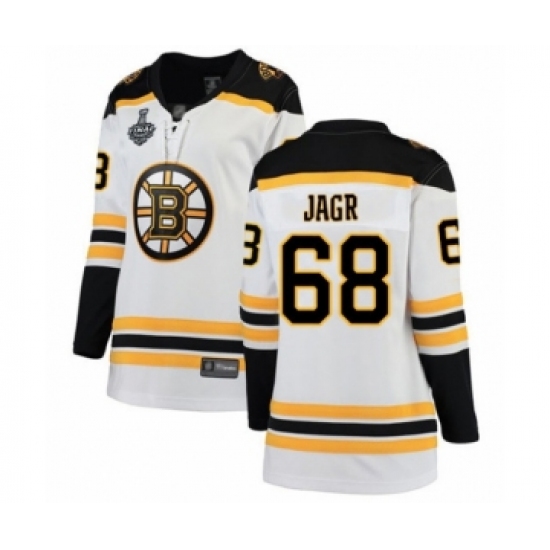 >Women's Boston Bruins #68 Jaromir Jagr Authentic White Away Fanatics Branded Breakaway 2019 Stanley Cup Final Bound Hockey Jersey