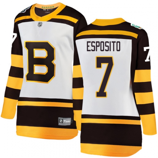 >Women's Boston Bruins #7 Phil Esposito White 2019 Winter Classic Fanatics Branded Breakaway NHL Jersey