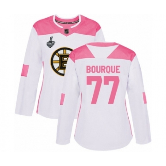 Women's Boston Bruins #77 Ray Bourque Authentic White Pink Fashion 2019 Stanley Cup Final Bound Hockey Jersey