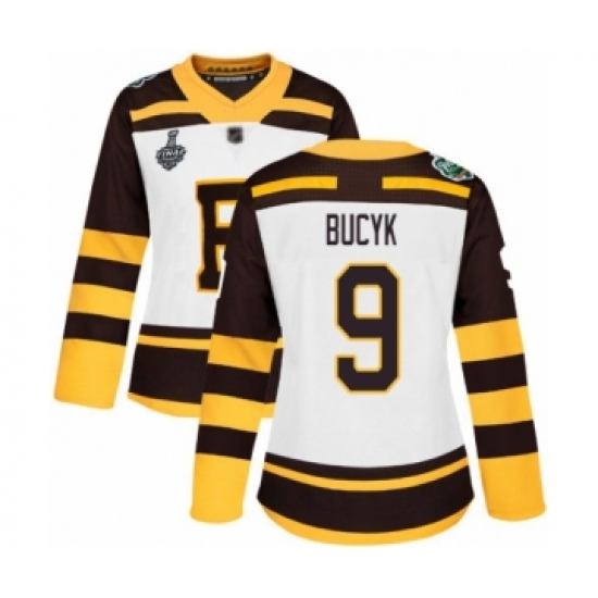 Women's Boston Bruins #9 Johnny Bucyk Authentic White Winter Classic 2019 Stanley Cup Final Bound Hockey Jersey