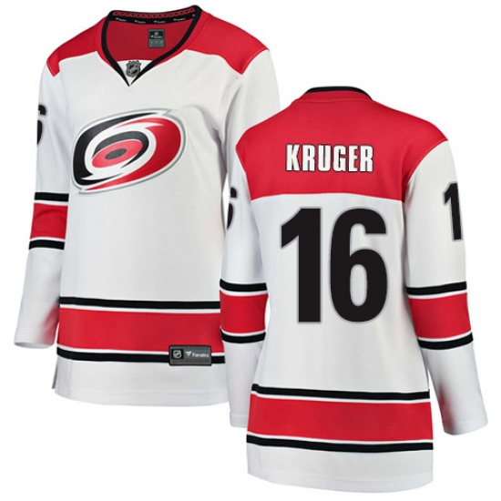 Home>NHL>Carolina Hurricanes>Marcus Kruger>Women's Carolina Hurricanes #16 Marcus Kruger Authentic White Away Fanatics Branded Breakaway NHL Jersey