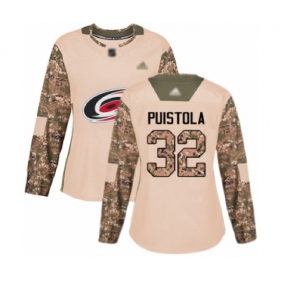 Women's Carolina Hurricanes #32 Patrik Puistola Authentic Camo Veterans Day Practice Hockey Jersey