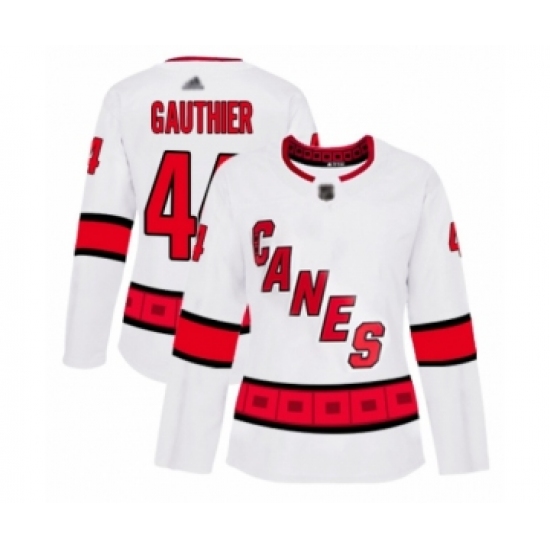>Women's Carolina Hurricanes #44 Julien Gauthier Authentic White Away Hockey Jersey