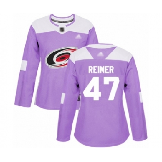 >Women's Carolina Hurricanes #47 James Reimer Authentic Purple Fights Cancer Practice Hockey Jersey