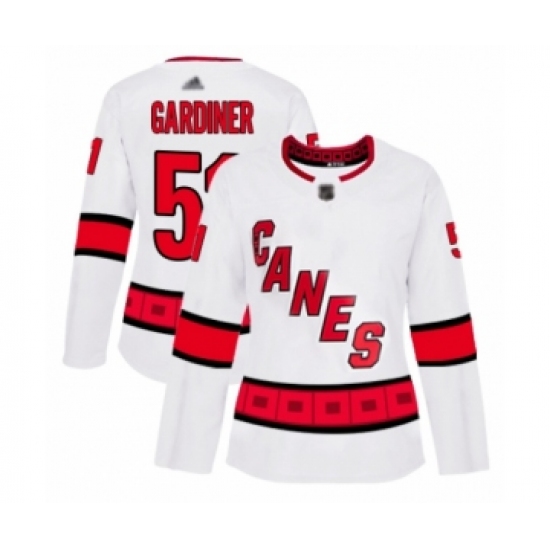 >Women's Carolina Hurricanes #51 Jake Gardiner Authentic White Away Hockey Jersey