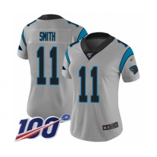 >Women's Carolina Panthers #11 Torrey Smith Silver Inverted Legend Limited 100th Season Football Jersey