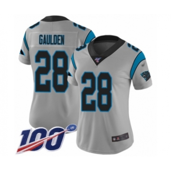 Women's Carolina Panthers #28 Rashaan Gaulden Silver Inverted Legend Limited 100th Season Football Jersey