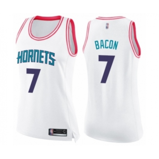 Women's Charlotte Hornets #7 Dwayne Bacon Swingman White Pink Fashion Basketball Jersey