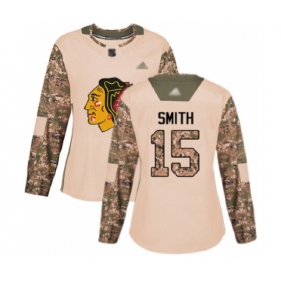 >Women's Chicago Blackhawks #15 Zack Smith Authentic Camo Veterans Day Practice Hockey Jersey