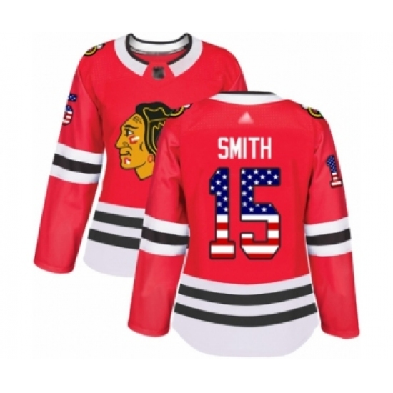 Women's Chicago Blackhawks #15 Zack Smith Authentic Red USA Flag Fashion Hockey Jersey
