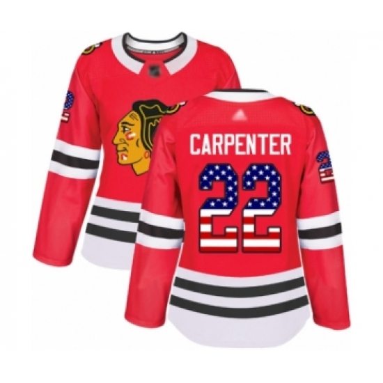Women's Chicago Blackhawks #22 Ryan Carpenter Authentic Red USA Flag Fashion Hockey Jersey