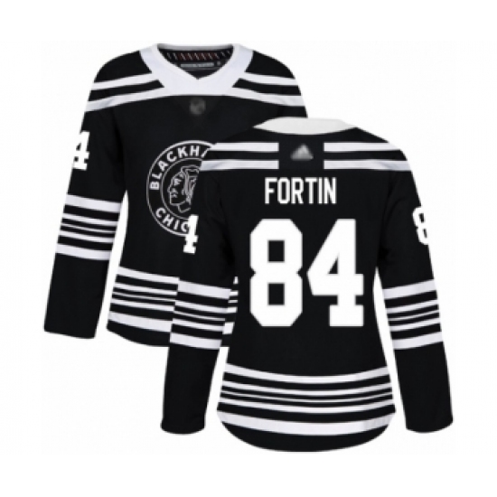 >Women's Chicago Blackhawks #84 Alexandre Fortin Authentic Black Alternate Hockey Jersey