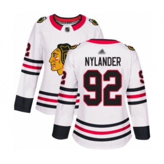 >Women's Chicago Blackhawks #92 Alexander Nylander Authentic White Away Hockey Jersey