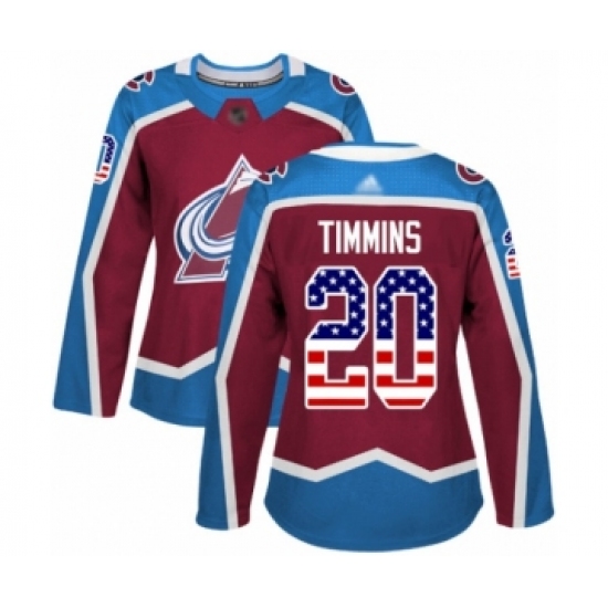 Women's Colorado Avalanche #20 Conor Timmins Authentic Burgundy Red USA Flag Fashion Hockey Jersey