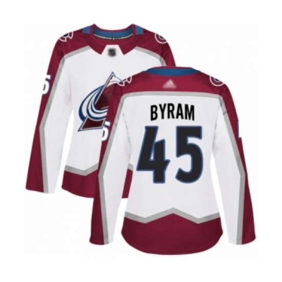 Women's Colorado Avalanche #45 Bowen Byram Authentic White Away Hockey Jersey