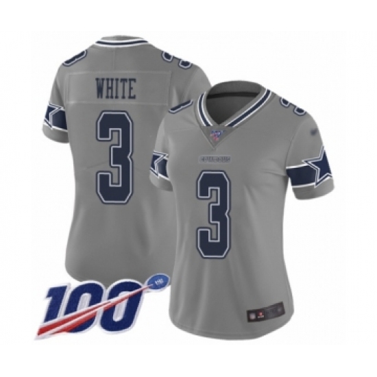 >Women's Dallas Cowboys #3 Mike White Limited Gray Inverted Legend 100th Season Football Jersey