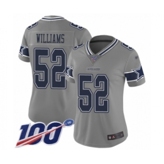 >Women's Dallas Cowboys #52 Connor Williams Limited Gray Inverted Legend 100th Season Football Jersey