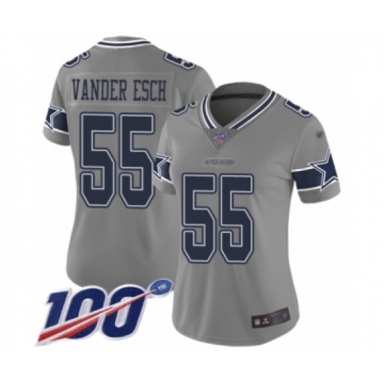 >Women's Dallas Cowboys #55 Leighton Vander Esch Limited Gray Inverted Legend 100th Season Football Jersey