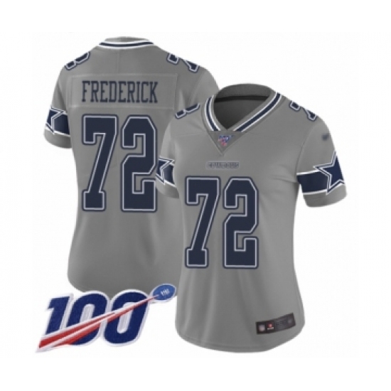 Women's Dallas Cowboys #72 Travis Frederick Limited Gray Inverted Legend 100th Season Football Jersey