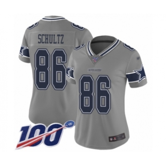 Women's Dallas Cowboys #86 Dalton Schultz Limited Gray Inverted Legend 100th Season Football Jersey