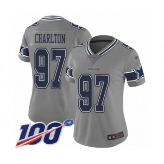 >Women's Dallas Cowboys #97 Taco Charlton Limited Gray Inverted Legend 100th Season Football Jersey