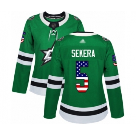 Women's Dallas Stars #5 Andrej Sekera Authentic Green USA Flag Fashion Hockey Jersey