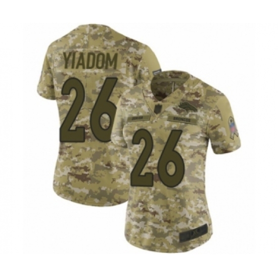 >Women's Denver Broncos #26 Isaac Yiadom Limited Camo 2018 Salute to Service Football Jersey