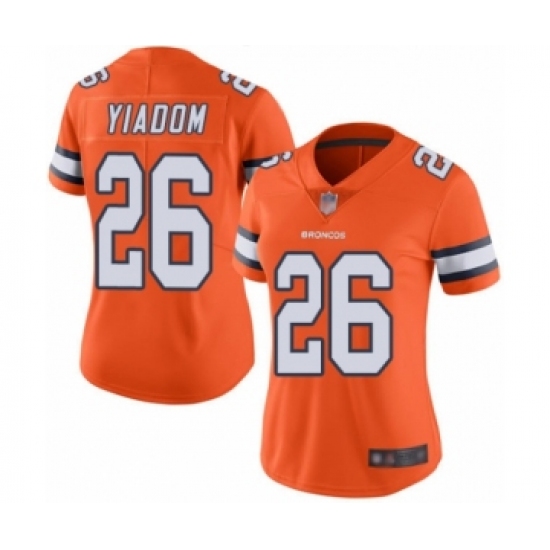 >Women's Denver Broncos #26 Isaac Yiadom Limited Orange Rush Vapor Untouchable Football Jersey