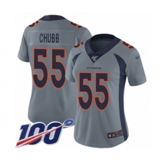 >Women's Denver Broncos #55 Bradley Chubb Limited Silver Inverted Legend 100th Season Football Jersey