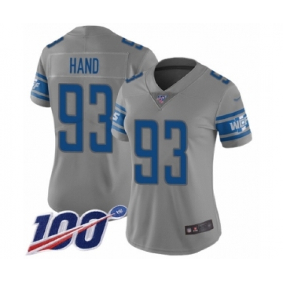 >Women's Detroit Lions #93 Da'Shawn Hand Limited Gray Inverted Legend 100th Season Football Jersey