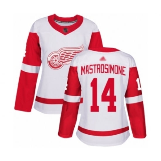 Women's Detroit Red Wings #14 Robert Mastrosimone Authentic White Away Hockey Jersey